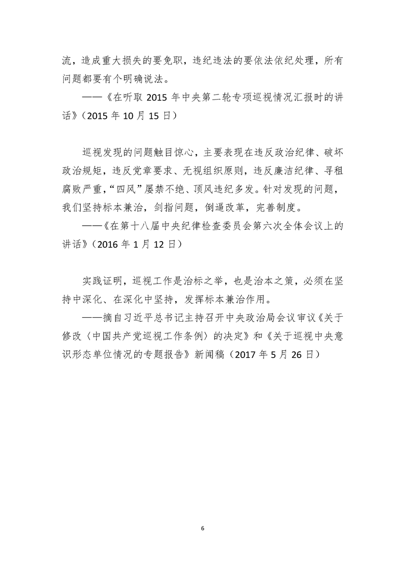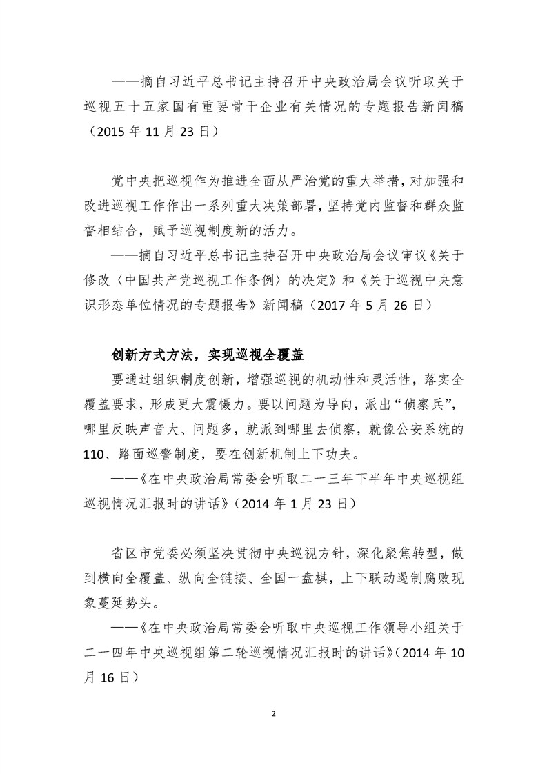 习近平总书记关于有助于巡视工作向纵深开展重要论述摘录