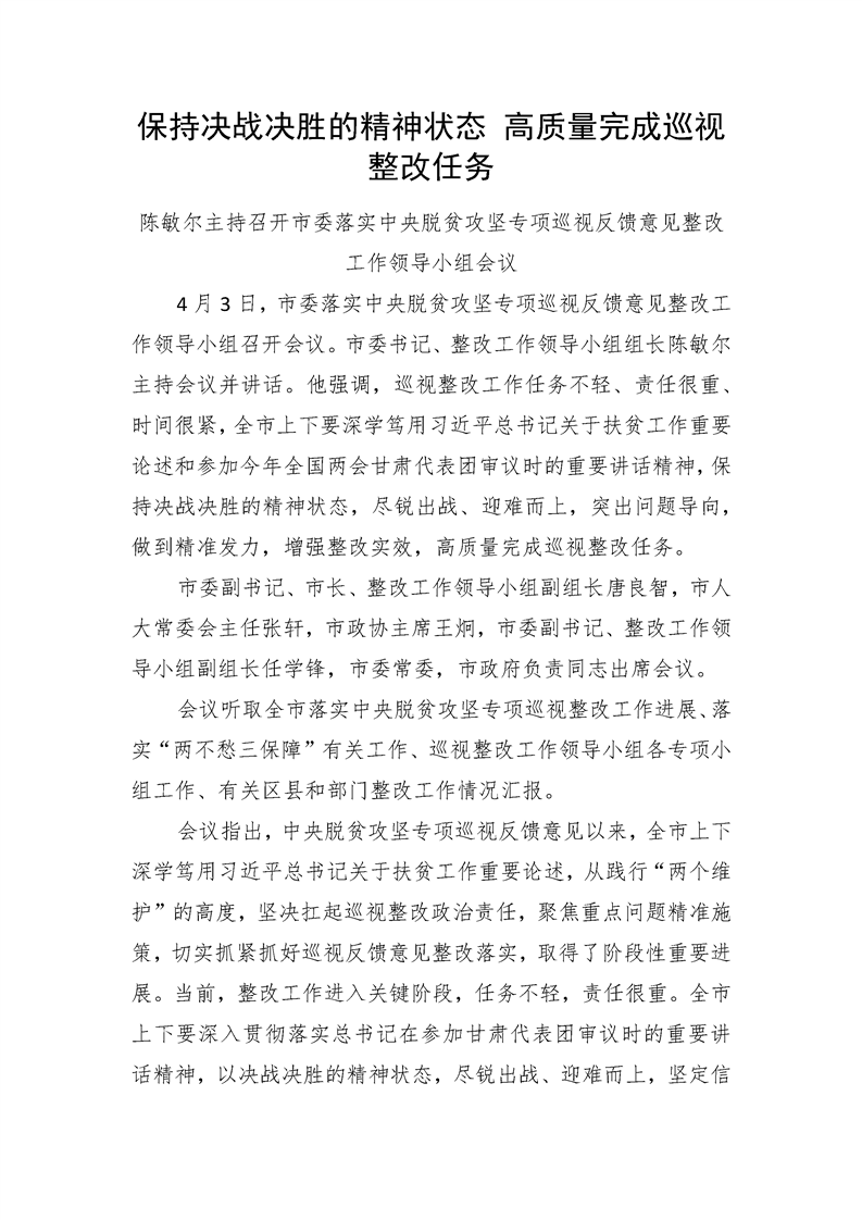 保持决战决胜的精神状态 高质量完成巡视整改任务