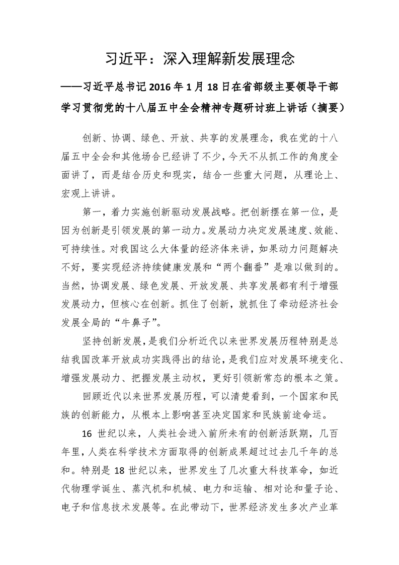 习近平:深入理解新开展理念——习近平总书记2016年1月18日在省部级主要领导干部学习贯彻党的十八届五中全会精神专题研讨班上讲话