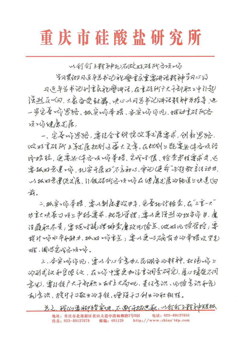 以钉钉子精神扎实实行硅所各项工作 - 向小阳