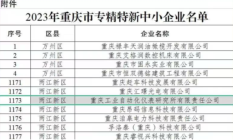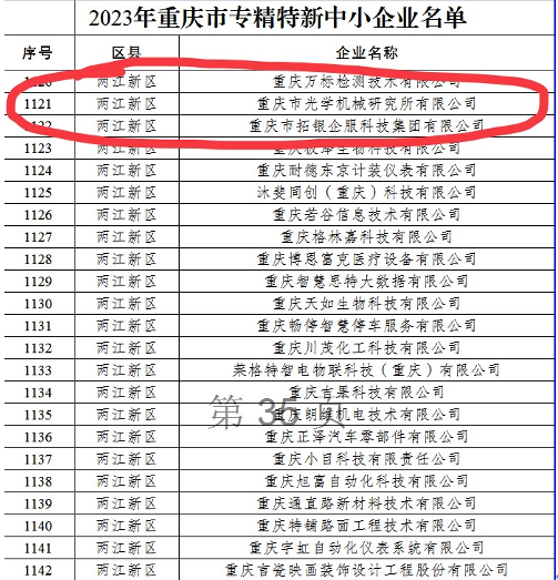 近期,市经信委公布2023年重庆市专精特新中小企业名单,凯发k8官网自动化所公司、光机所公司、硅酸盐所长乐公司成功获批该称号。
